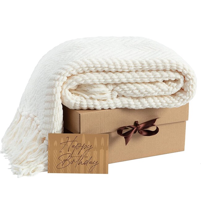 Birthday Gift Blanket Set Knitted White Soft Elegant Throw Blankets Pack of 4