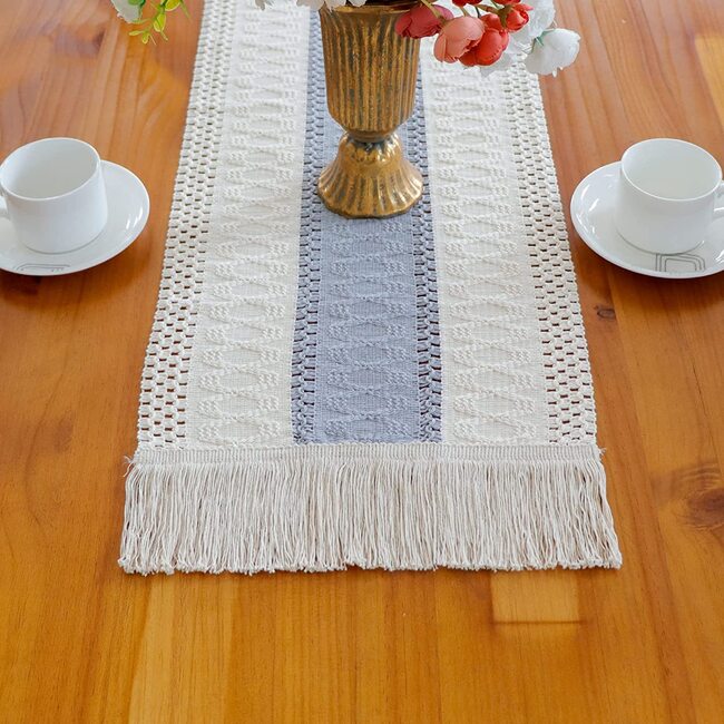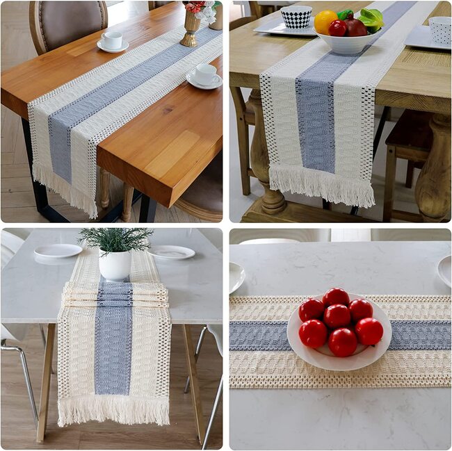 4.Unique Design: The table runner features delicate beige and weaved hollow striped cotton fabric with tassel, giving a minimalist feel and boho charm, to give your table a new look.