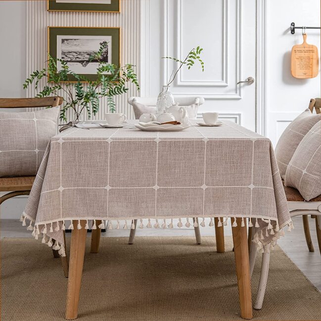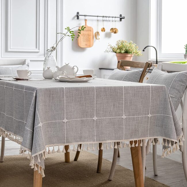 Unique design: Cotton linen tablecloths with delicate embroidery patterns and beautiful fringed edges. Add a touch of elegance to your room while protecting and decorating your table, making your meal more enjoyable