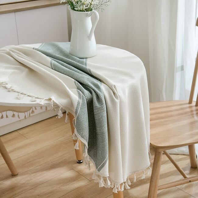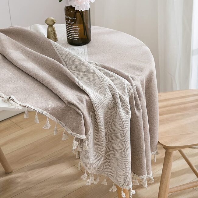 Delicate Jacquard: This round tablecloth features elegant geometric jacquard in premitive polyester fabric which make this table cloth vintage and elegant.