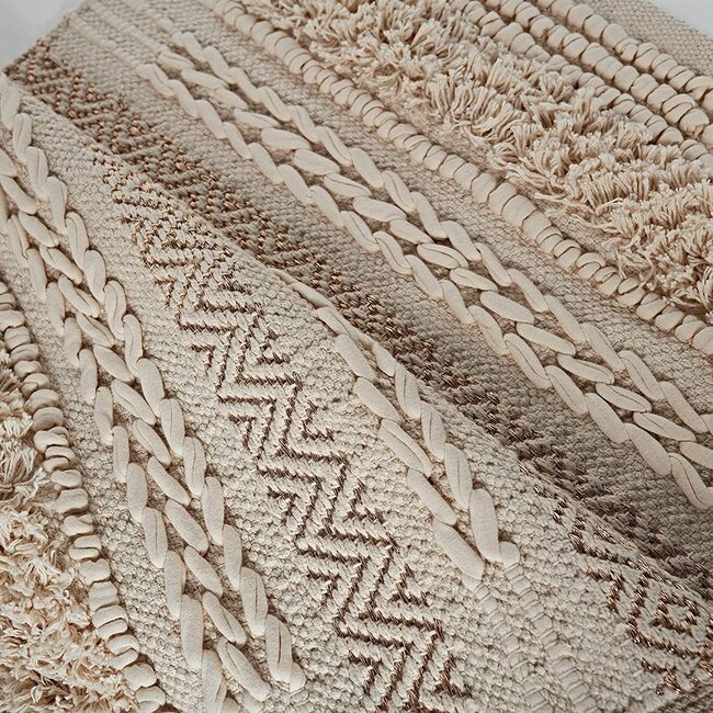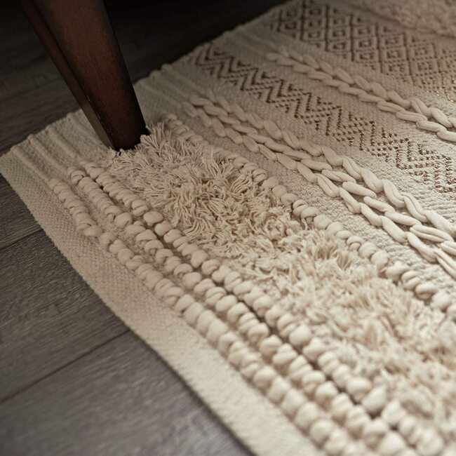 2.Care for Fiber: The 100% Ecologically Grown Cotton ultra thick tufts furnish exceptional comfort. Beautifully stitched with durable Metallic Golden Lurex Fibers. Perfect for your living room, bedroom, dining room, kitchen, or hallway entryway.