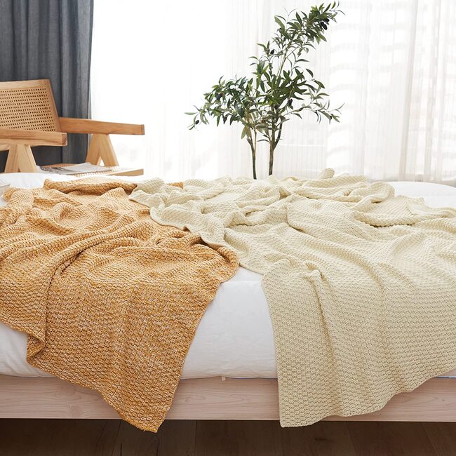 1.Knitted to present a yellow & white combo, this blanket easily coordinates with a range of home décor. Perfect for homes with a modern, classic, traditional, contemporary, industrial or chic setting.