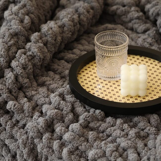 It weighs 5 lbs! Our luxury Hand-knit vegan chenille throw blankets bring a sophisticate touch into your home.