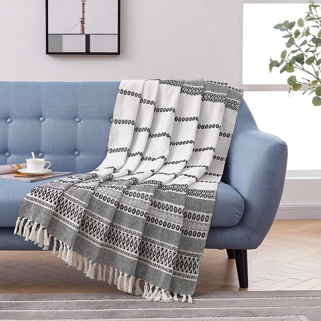 This beautiful high-quality 100% cotton decorative blanket will last for years to come. It is lightweight making it great for summer and easy transportation between rooms.