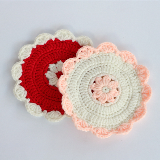 16 Pcs Handmade Wool Crochet Knitted Floral Cup Mats