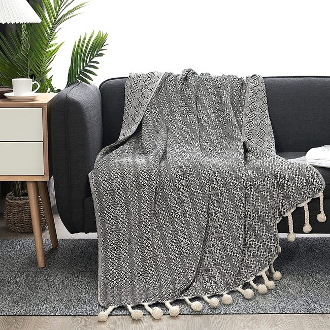 10Pcs Black and White Throw Blankets Hand-Knitted with Tassel for Sofa Couch 60x50 Inch